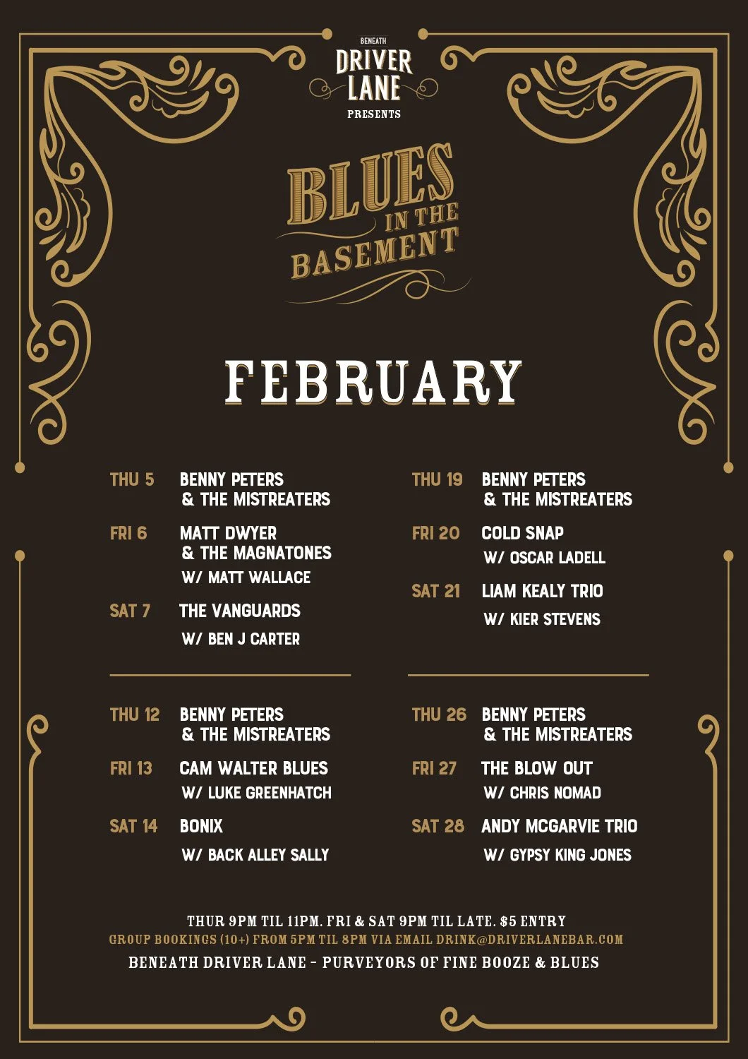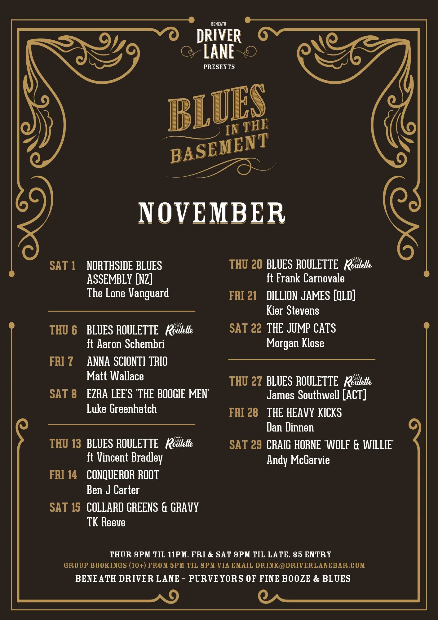 Since 2017 Beneath Driver Lane has been a supporting the best local, national and international acts in live blues. On the touring list of the best, BDL’s stage is set and ready for incredible performances every Thursday (from 9pm) Friday & Saturday (from 8pm) every week. Should you visit outside of these times, never fear, we are a whisky, blues cocktail bar so the ONLY music we play is the blues! See you soon for great times and amazing acts.